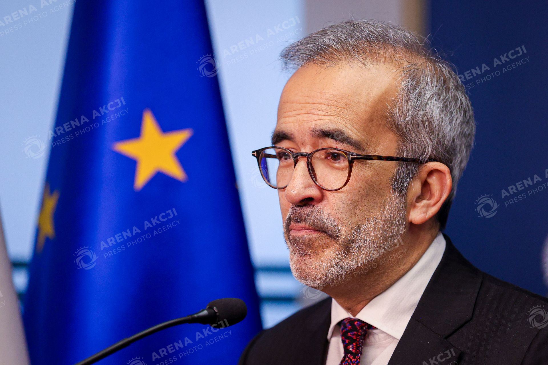 Warszawa 19.12.2025. Ministerstwo Spraw Zagranicznych. Oswiadczenia prasowe szefow dyplomacji Polski i Portugalii Radoslawa Sikorskiego i Paulo Rangela w sprawach Ukrainy i handlu pomiedzy Polska a Portugalia --- Ministry of Foreign Affairs. Press statements by the heads of diplomacy of Poland and Portugal, Radoslaw Sikorski and Paulo Rangel, on matters concerning Ukraine and trade between Poland and Portugal. nz Radoslaw Sikorski Paulo Rangel Fot. Igor Jakubowski / Arena Akcji