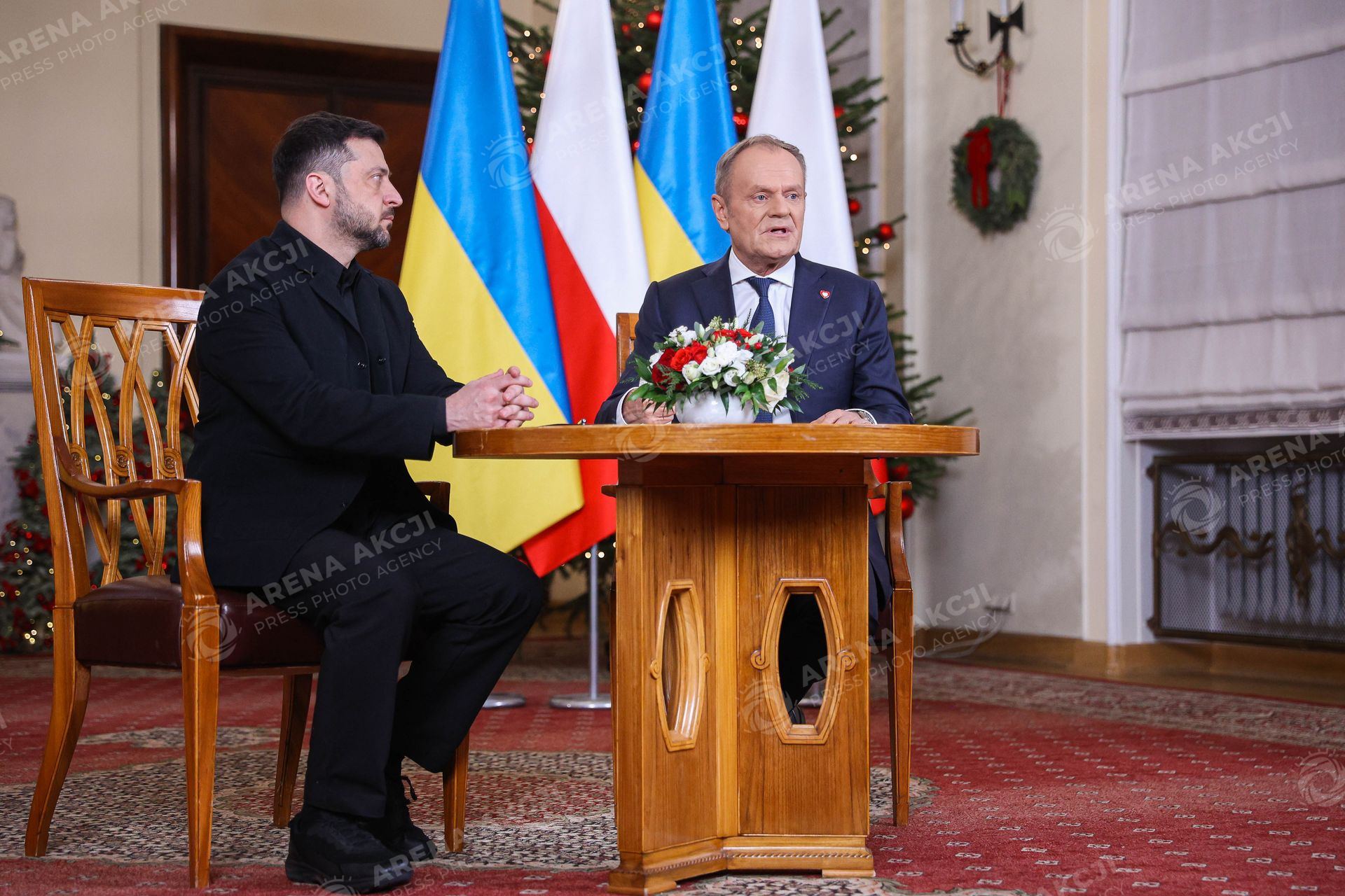Warszawa 19.12.2025. Spotkanie Premiera Donalda Tuska z Prezydentem Ukrainy Wolodymyrem Zelenskim --- Polish Prime Minister Donald Tusk meeting with President of Ukraine Wolodymyr Zelenski nz Donald Tusk Wolodymyr Zelenski Fot. Igor Jakubowski / Arena Akcji