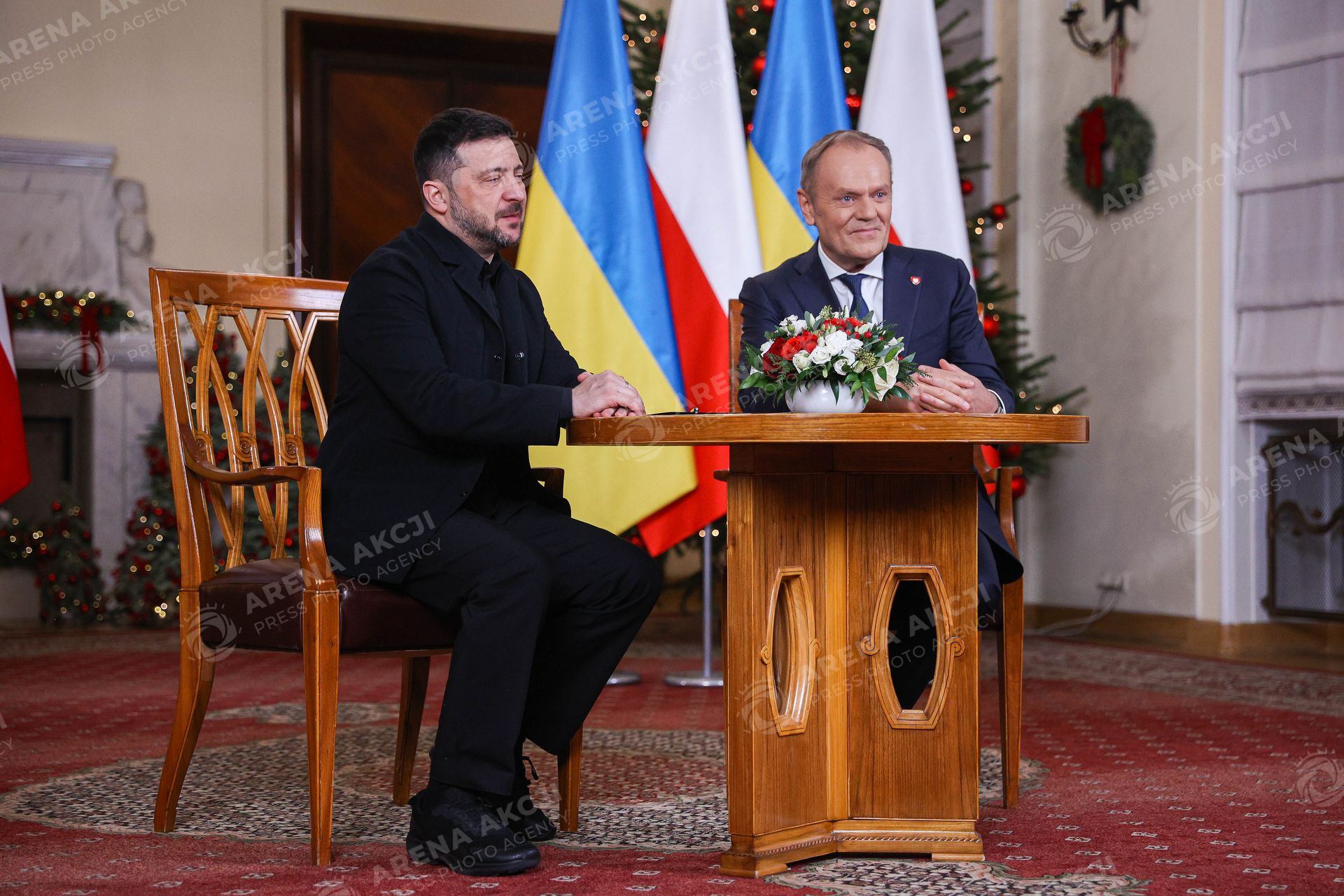 Warszawa 19.12.2025. Spotkanie Premiera Donalda Tuska z Prezydentem Ukrainy Wolodymyrem Zelenskim --- Polish Prime Minister Donald Tusk meeting with President of Ukraine Wolodymyr Zelenski nz Donald Tusk Wolodymyr Zelenski Fot. Igor Jakubowski / Arena Akcji