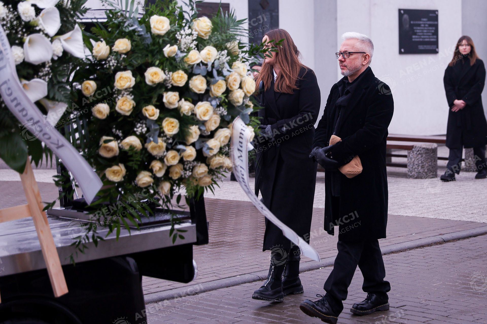 lodz 12.02.2026. Pogrzeb aktorki Janina Boronska Lagwa, matka Jacka Lagwy z zespolu Ich troje nz Jacek Lagwa z zona Fot. Igor Jakubowski / Arena Akcji