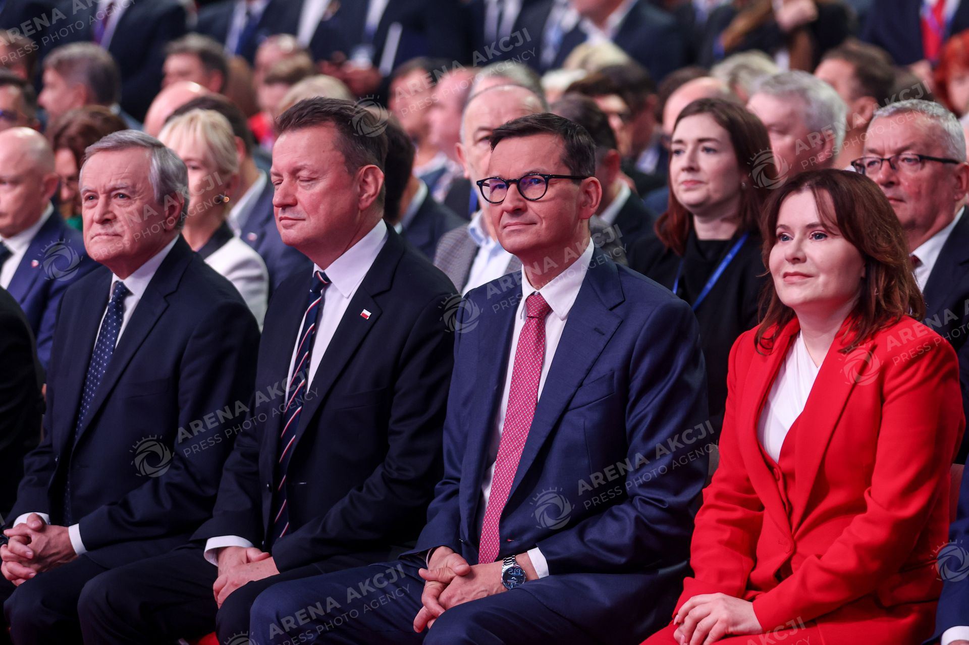 24.10.2025, Katowice Konwencja programowa PiS - Myslac Polska - Programming convention PiS Nz. Piotr Glinski, Mariusz Blaszczak, Mateusz Morawiecki, Anna Krupka Fot. Michal Chwieduk/Arena Akcji