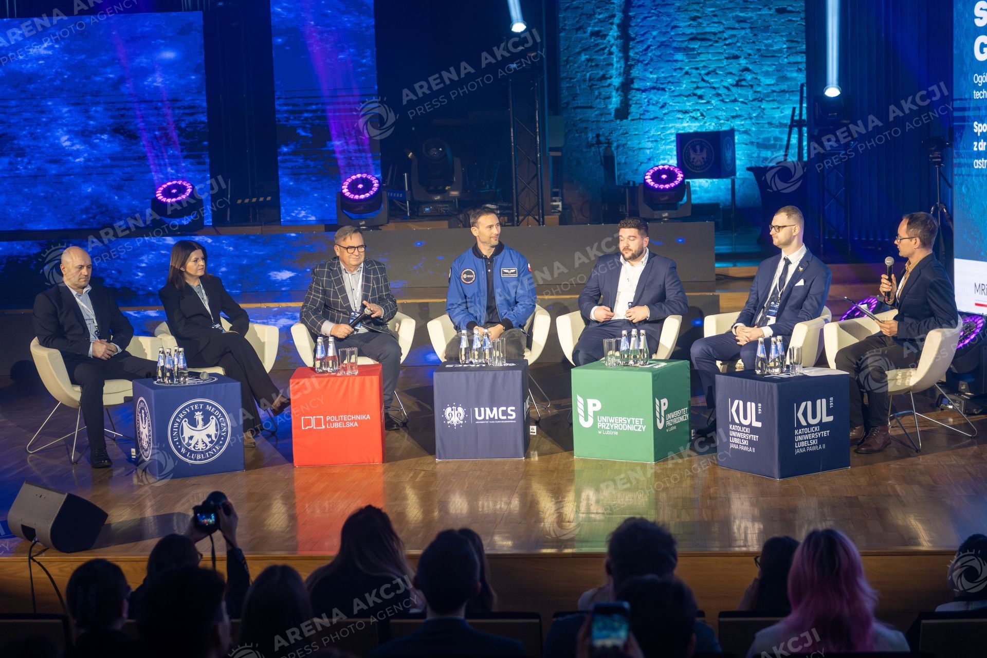 Lublin 16.12.2025 Wizyta Slawosza Uznanskiego Wisniewskiego w ramach trasy IGNIS - Polska siega gwiazd Nz. dr Slawosz Uznanski Wisniewski podczas panelu dyskusyjnego z przedstawicielami lubelskich szkol wyzszych Fot. Wojciech Szubartowski / arena akcji