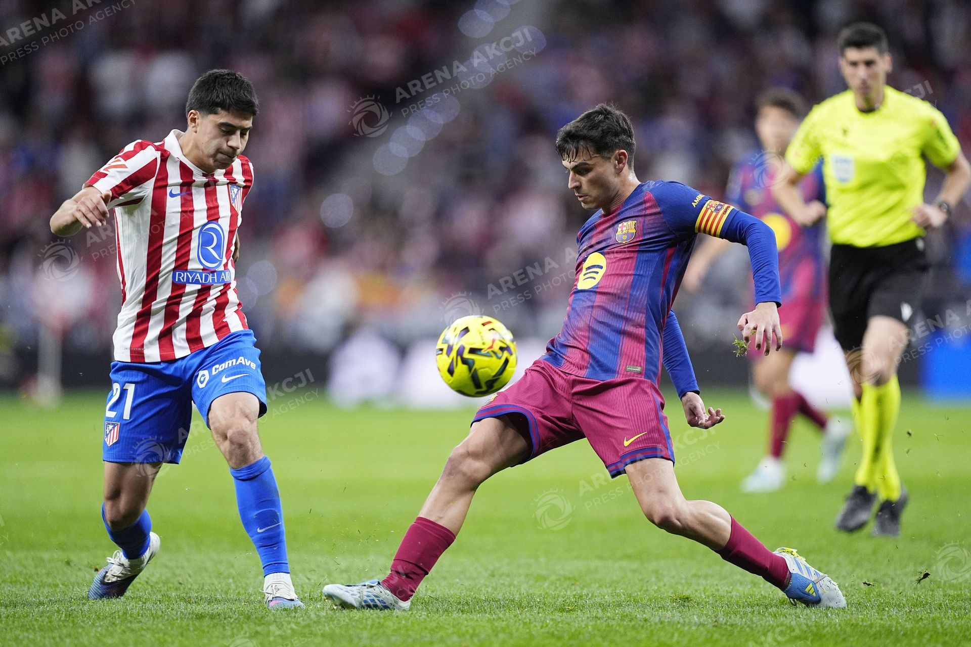 Pedri Gonzalez of FC Barcelona and Obed Vargas of Atletico de Madrid during the Spanish championship LaLiga football match between Atletico de Madrid and FC Barcelona on 4 April 2026 at Riyadh Air Metropolitano stadium in Madrid, Spain - Photo Oscar J Barroso/DPPI /ARENA AKCJI !!!POLAND ONLY!!!