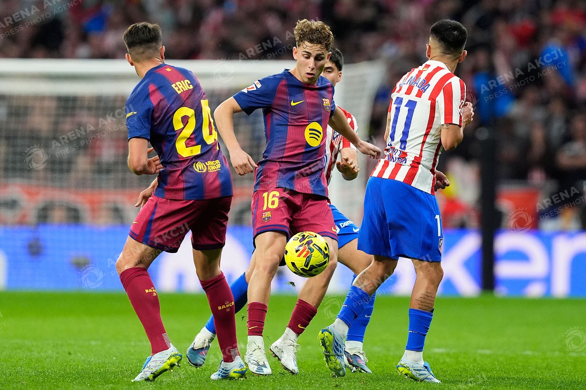 Atletico de Madrid's Thiago Almada (b) and FC Barcelona's Fermin Lopez during La Liga match. April 4, 2026. (Photo by Acero/Alter Photos/Sipa USA) /ARENA AKCJI !!!POLAND ONLY!!!