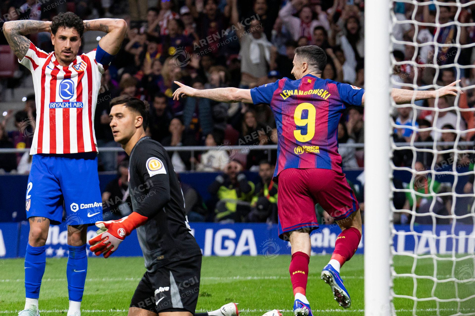 Spanish La Liga EA Sports soccer match Atletico Madrid vs FC Barcelona at Riyadh Air Matripolitano Stadium in Madrid, Spain. 04 April 2026 Lewandowski celebrates a goal (Photo by Cordon Press/Sipa USA) /ARENA AKCJI !!!POLAND ONLY!!!