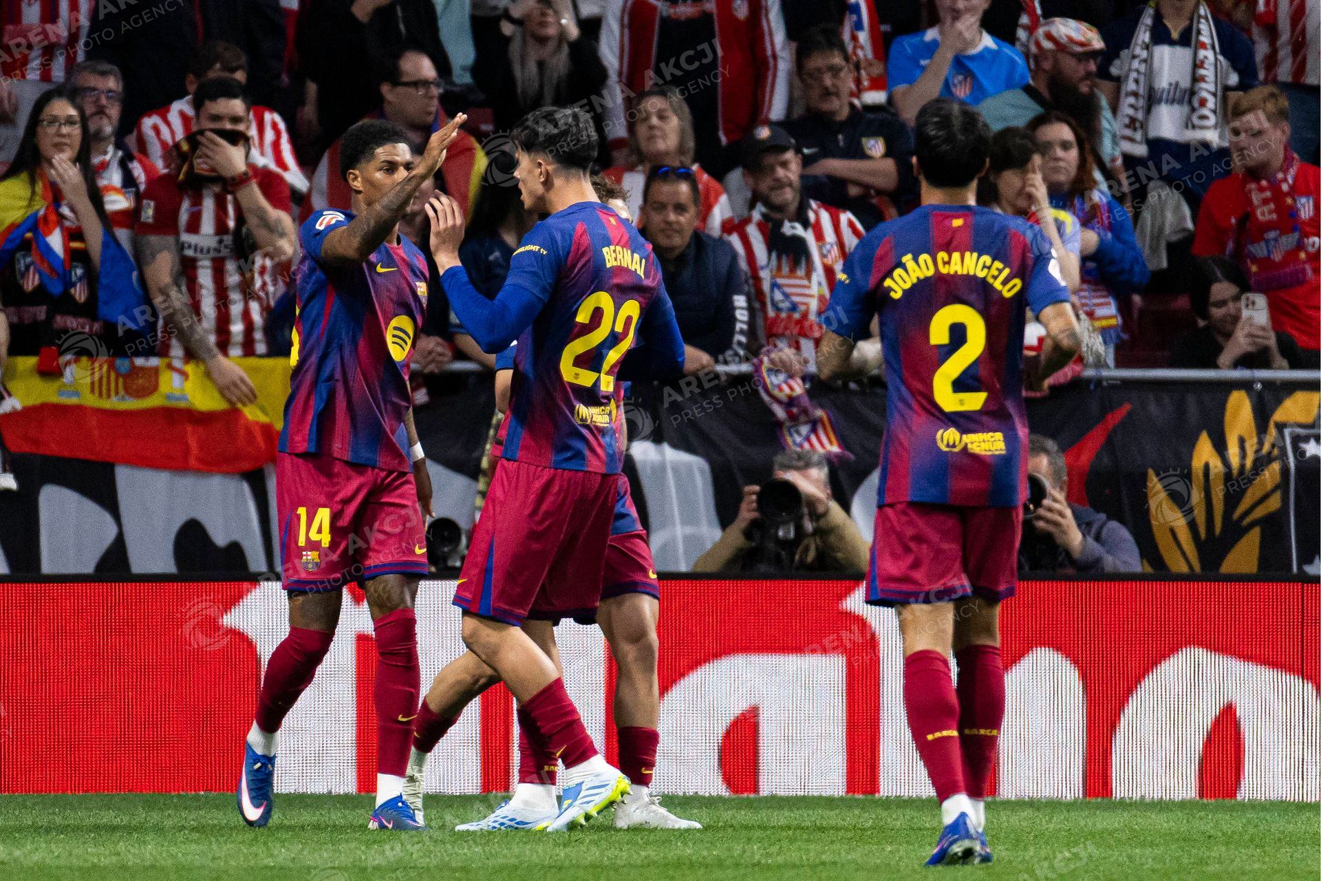 Spanish La Liga EA Sports soccer match Atletico Madrid vs FC Barcelona at Riyadh Air Matripolitano Stadium in Madrid, Spain. 04 April 2026 Marcus Rashford celebrates a goal (Photo by Cordon Press/Sipa USA) /ARENA AKCJI !!!POLAND ONLY!!!