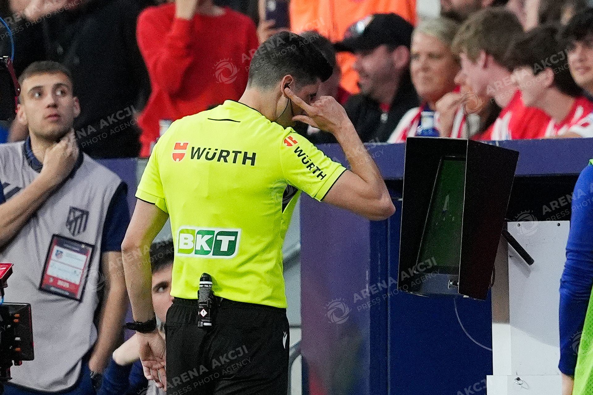Referee Mateo Ferrer Busquets looks VAR during La Liga match. April 4, 2026. (Photo by Acero/Alter Photos/Sipa USA) /ARENA AKCJI !!!POLAND ONLY!!!