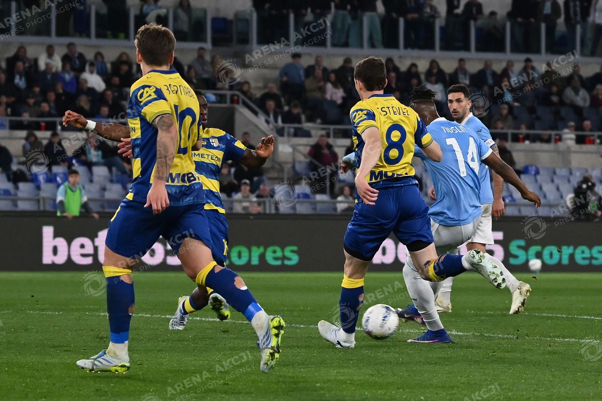 Tijjani Noslin of S.S. Lazio scores the goal for 1-1 during the 31th matchday of the Serie A championship between S.S. Lazio and Parma Calcio 1913 at the Olympic Stadium on April 4, 2026 in Rome, Italy. - Photo Domenico Cippitelli /ARENA AKCJI !!!POLAND ONLY!!!