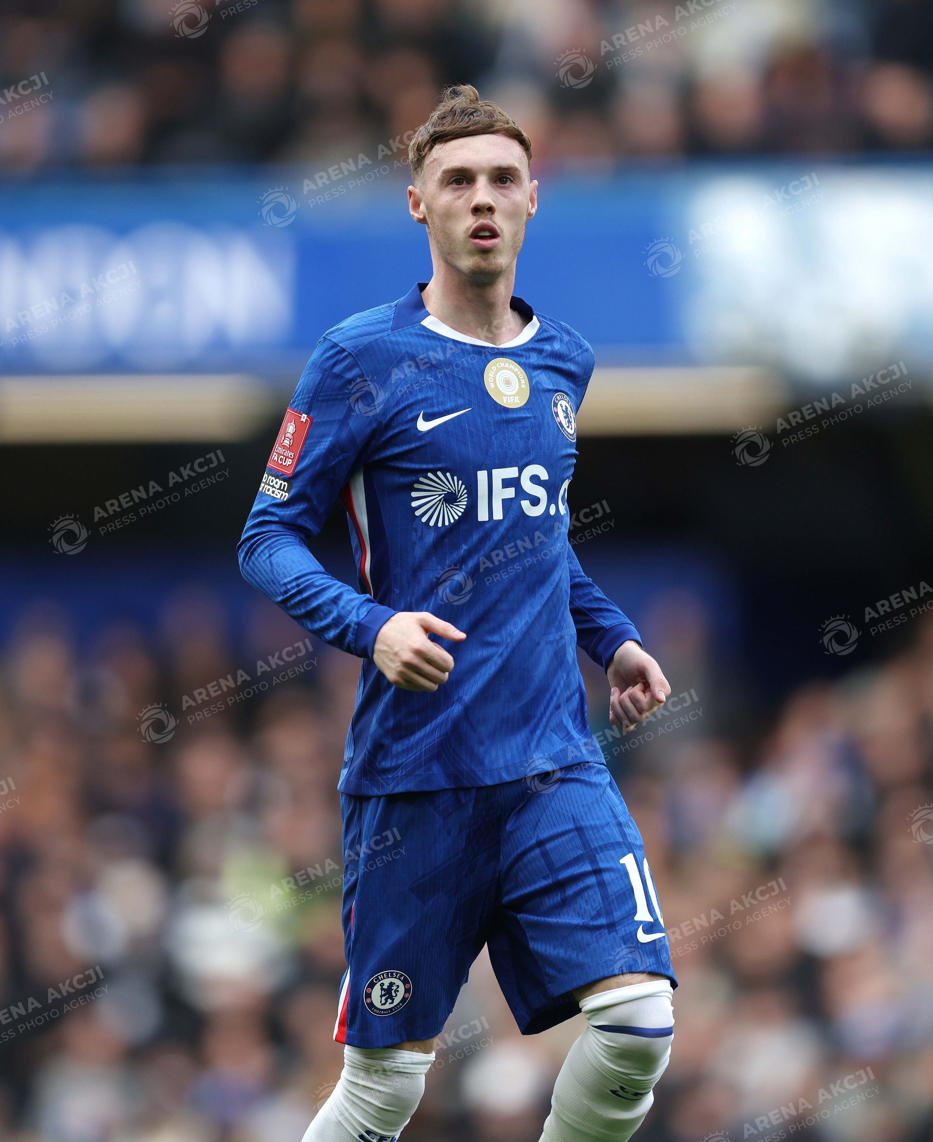 LONDON, ENGLAND, APRIL 04: Cole Palmer of Chelsea with the captains armband during the match between Chelsea FC and Port Vale FC in the Emirates FA Cup Quarter Final match at Stamford Bridge Stadium in London, England, on April 4. (Photo by Daniel Weir) (Photo by Daniel Weir/Sports Press Photo/Sipa USA) /ARENA AKCJI !!!POLAND ONLY!!!