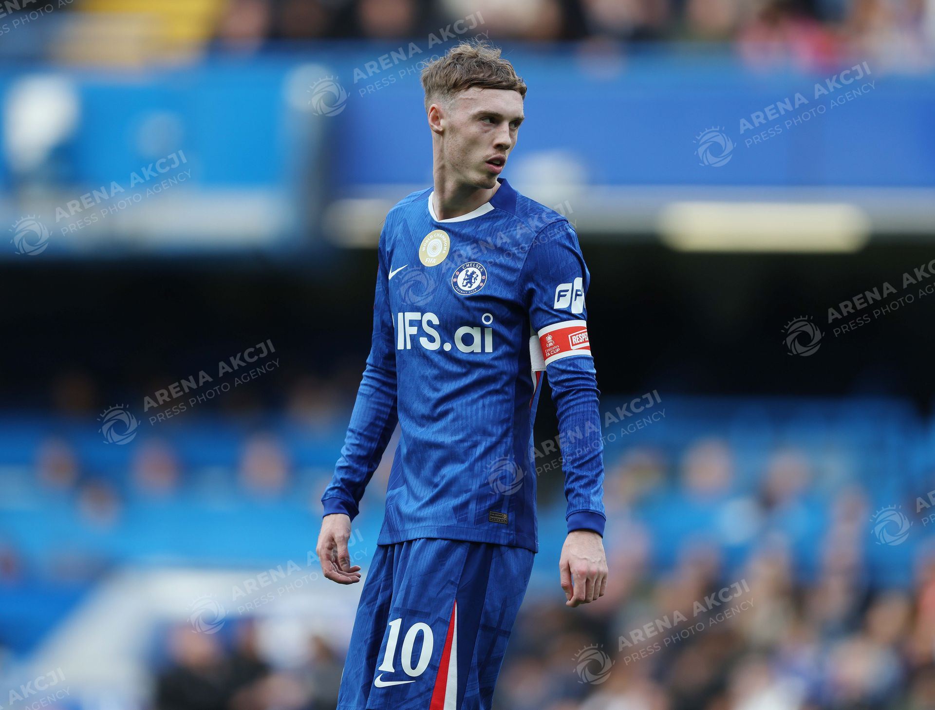 LONDON, ENGLAND, APRIL 04: Cole Palmer of Chelsea with the captains armband during the match between Chelsea FC and Port Vale FC in the Emirates FA Cup Quarter Final match at Stamford Bridge Stadium in London, England, on April 4. (Photo by Daniel Weir) (Photo by Daniel Weir/Sports Press Photo/Sipa USA) /ARENA AKCJI !!!POLAND ONLY!!!