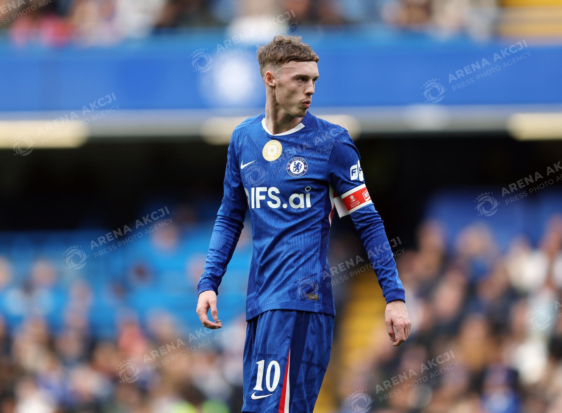 LONDON, ENGLAND, APRIL 04: Cole Palmer of Chelsea with the captains armband during the match between Chelsea FC and Port Vale FC in the Emirates FA Cup Quarter Final match at Stamford Bridge Stadium in London, England, on April 4. (Photo by Daniel Weir) (Photo by Daniel Weir/Sports Press Photo/Sipa USA) /ARENA AKCJI !!!POLAND ONLY!!!
