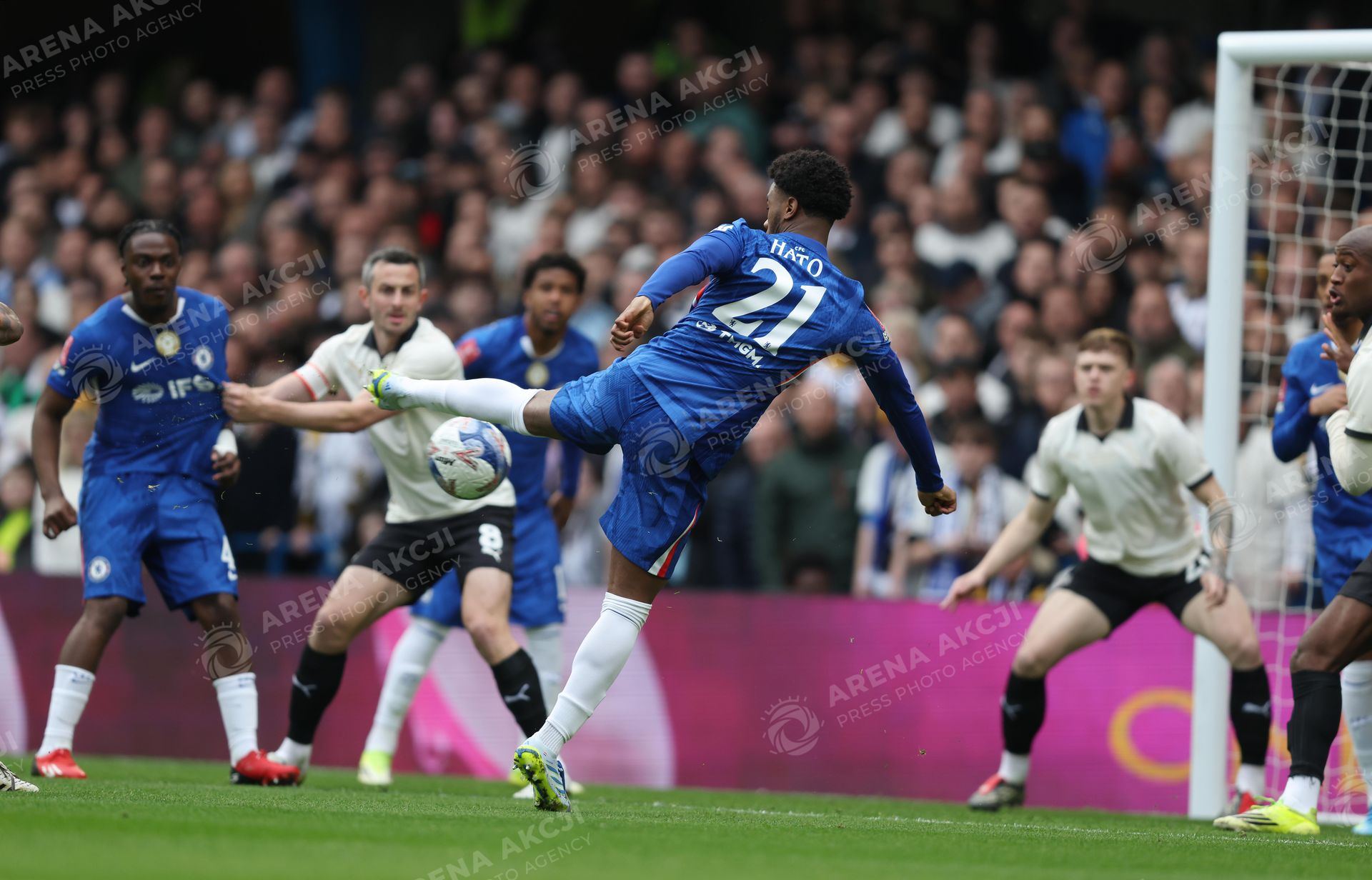 LONDON, ENGLAND, APRIL 04: GOAL 1-0, Jorrel Hato of Chelsea scores a goal to put Chelsea 1-0 ahead during the match between Chelsea FC and Port Vale FC in the Emirates FA Cup Quarter Final match at Stamford Bridge Stadium in London, England, on April 4. (Photo by Daniel Weir) (Photo by Daniel Weir/Sports Press Photo/Sipa USA) /ARENA AKCJI !!!POLAND ONLY!!!